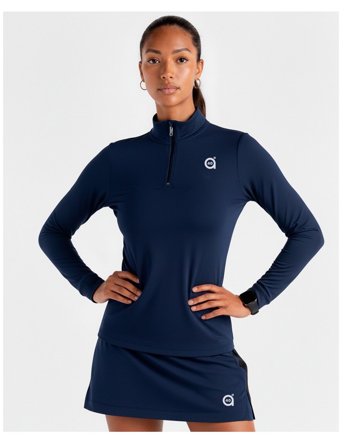 Camiseta de manga larga muy ponible en épocas de más fresquito, con medio cuello alto y cremallera. Comodísima. Nos encanta.
