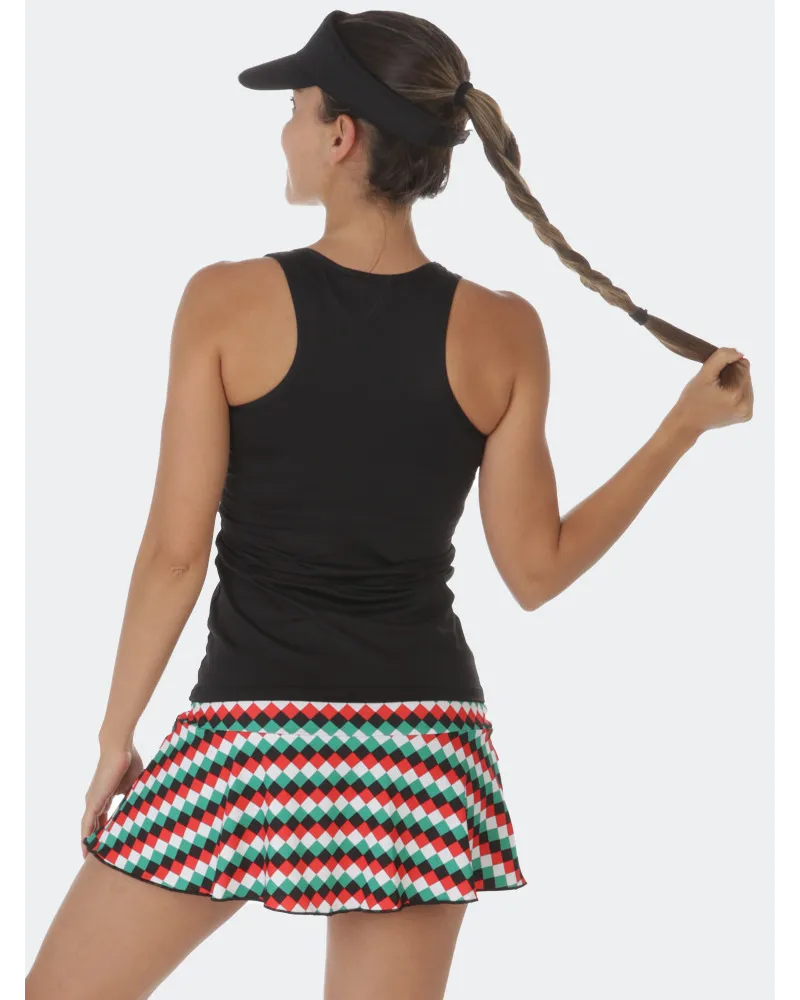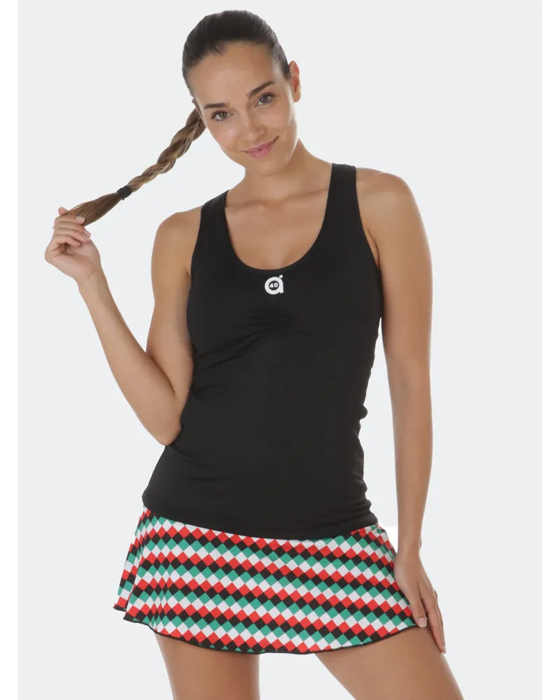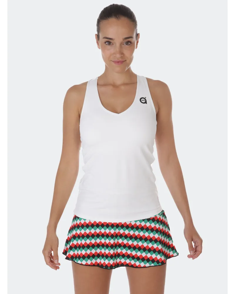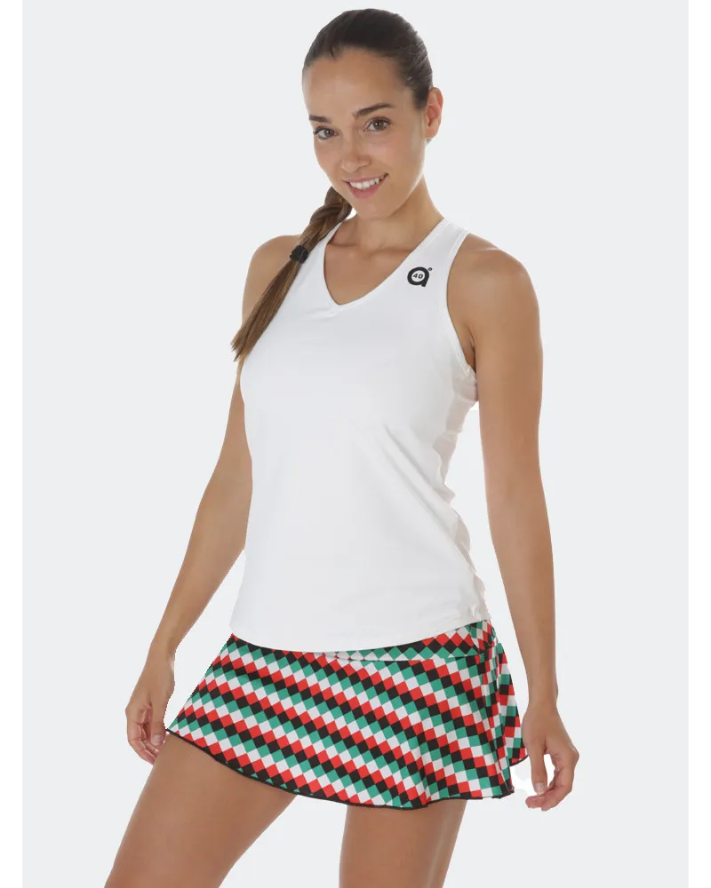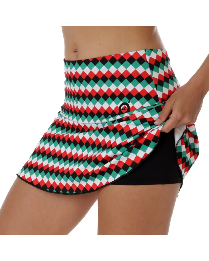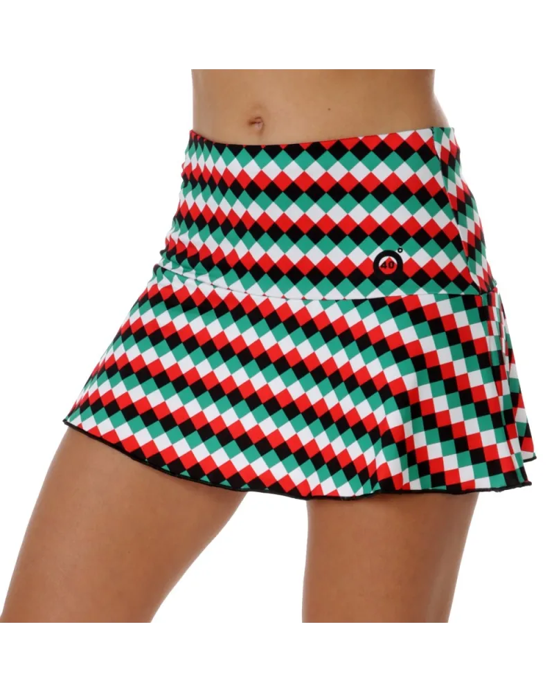 Falda con corte en cadera. Estampado rombos color diseño exclusivo pattern a40grados . Culote incorporado.