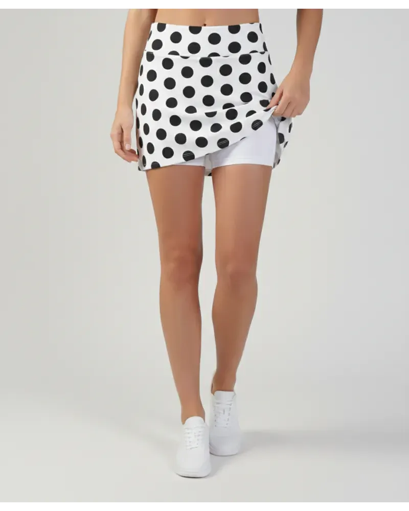 Padel and tennis skirt in a Lunar Black/White print with a fluid drape and built-in white inner shorts, designed for comfort, movement, and a premium on-court look